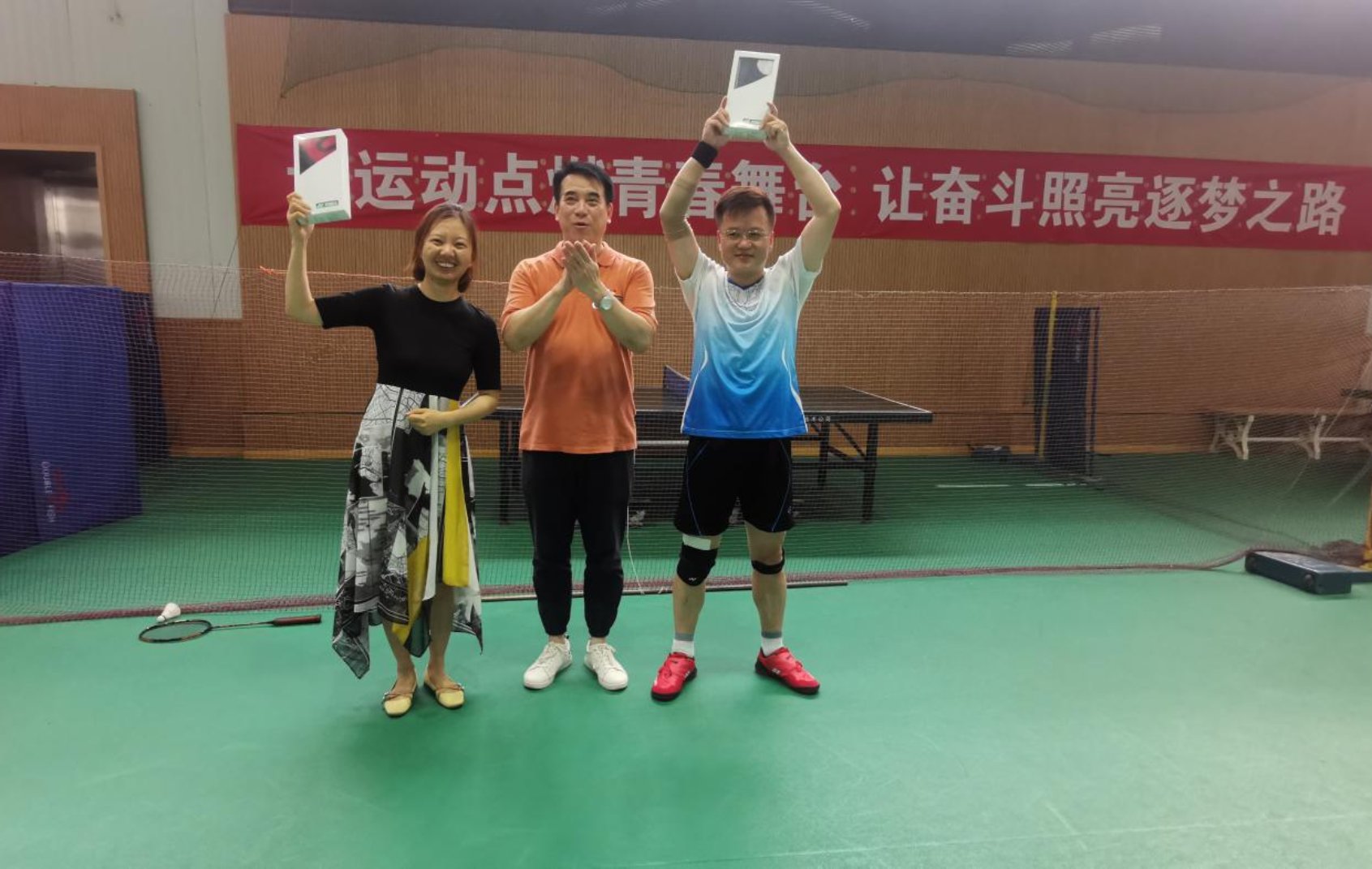 7月13日,400全讯白菜网羽协联赛本赛季第一次分站赛成功闭幕,学院党委书记何立新为在本赛季中取得优异成绩的获奖选手颁奖。本次共有李路阳、李佳婧、孙立、陈志端、韩风、刘玮6名教师分别荣获联赛一二三等奖,杨震、祝贺、贺鼎、阚玉德、孙艳晨、滕学荣等13名教师获得期待奖。