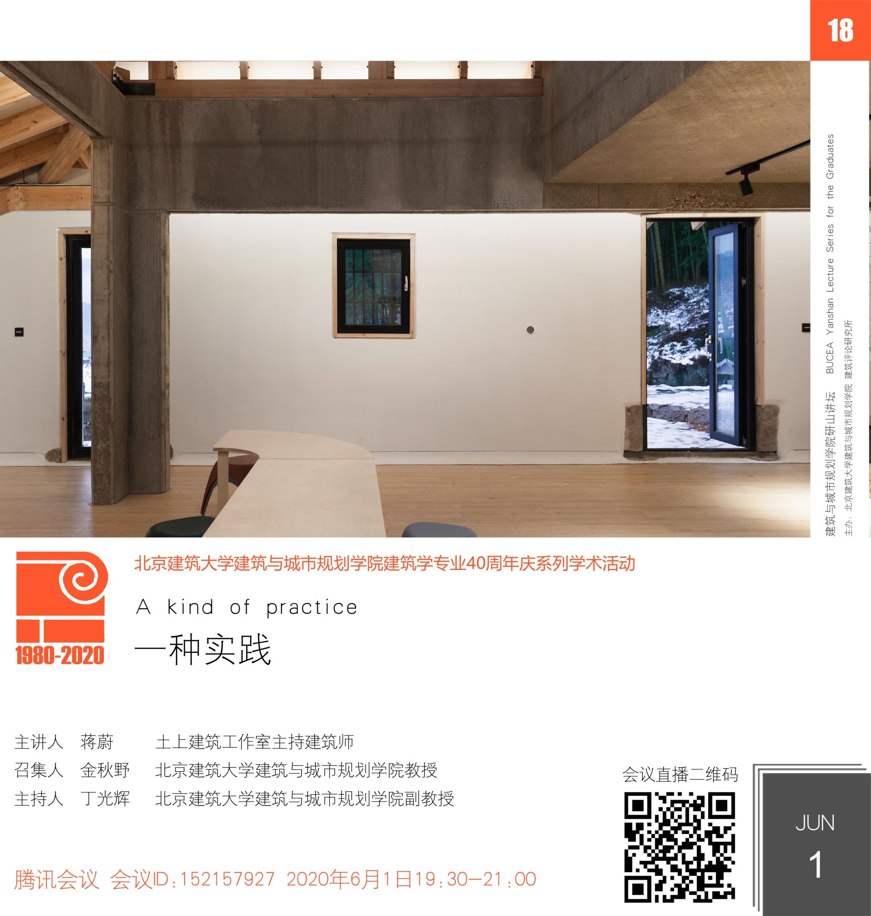 6月1日晚19:30,在腾讯会议与网络直播平台,400全讯白菜网研山讲坛第18期拉开帷幕。400全讯白菜网党委书记何立新、教授穆钧、校内外师生、社会各界学者、实践建筑师等220余人参与本次讲坛。