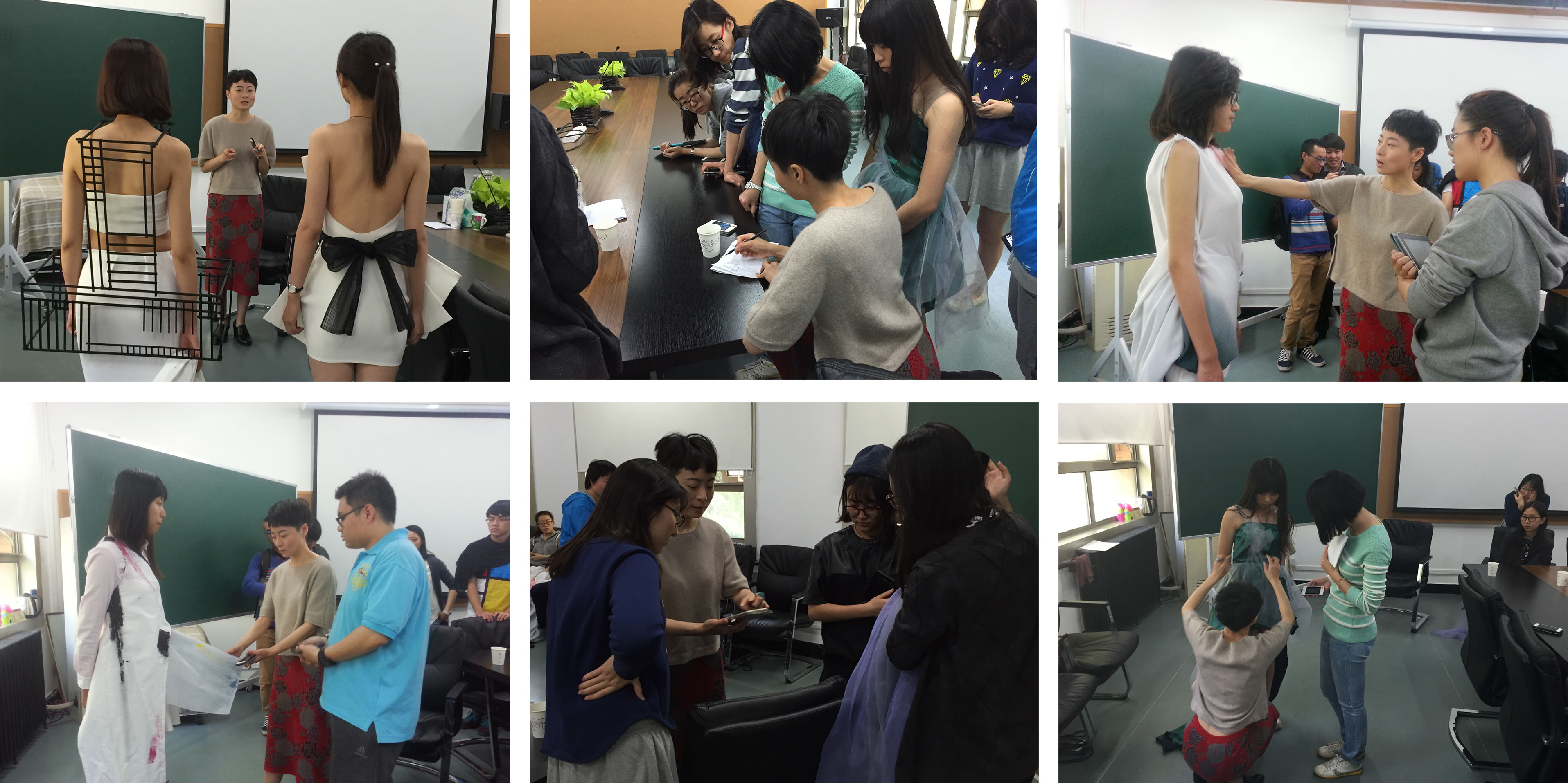 李坤老师首先跟大家介绍了当前国内时装行业的发展现状和发展趋势,接着谈到了自己的设计理念和想法,她的设计倾向简洁都市风格,灵感多来自历史和对人文的思考。她对裁剪和面料非常讲究,工艺细节考究,常有高级定制工艺的应用。最后,李坤老师特别鼓励建筑专业的相关学生对服装设计领域的探索,并指出建筑师在服装设计及时尚领域有着很大优势和潜力。