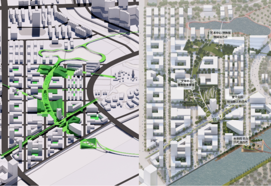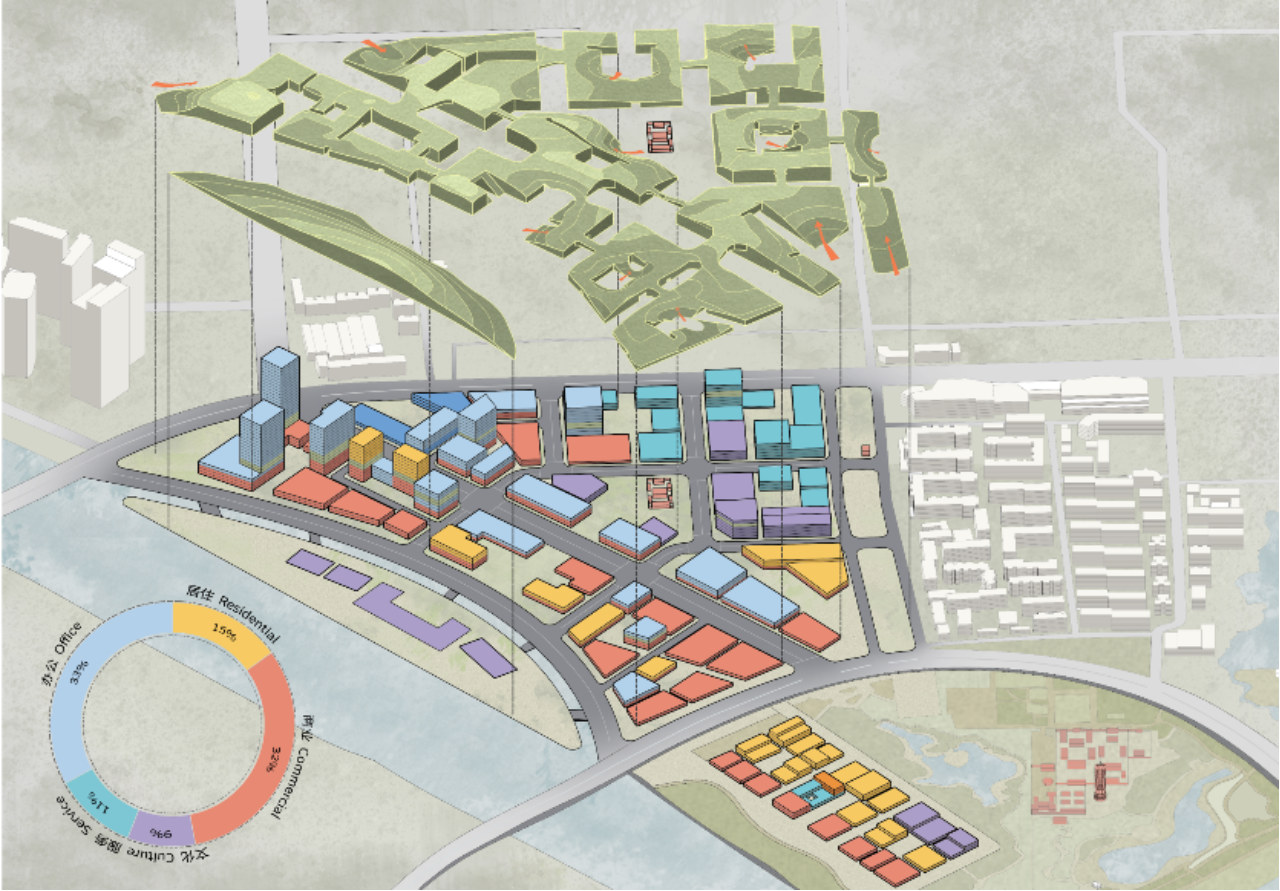 “北方4校+1”城市设计联合设计教学评图的设计地段选在北京市通州区北关片区的通州运河中心商务区,设计研究范围约100公顷。课程要求学生在深入研究地段条件、梳理城市问题的基础上,基于北京市副中心未来的发展规划和产业定位,将运河文化、历史遗迹、生态资源、公共空间等要素综合考虑,选择不少于15公顷的地段进行概念性城市设计,非常具有挑战性。本次联合教学共分3个阶段。第一阶段为调研阶段,由北方工业大学出题及组织调研活动。5校师生以混编的方式在地段进行了为期4天的详细调研,并在北方工业大学进行了调研汇报。第二阶段为中期评图,由内蒙古工业大学组织,5校师生在线上进行了中期汇报。第三阶段为终期评图,由山东建筑大学组织。基于疫情防控的考虑,5校师生仍然采取云端的方式进行了最终汇报。我校两组学生分别介绍了题为“O-RING”和“叠翠”的设计,获得了好评。