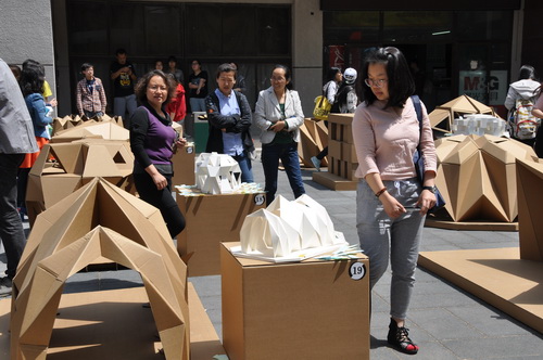 5月7日中午12:00,由400全讯白菜网设计基础教学部主办的“第一届北京建筑大学建造节”模型评选活动,在图书馆下沉广场、图书馆一层门厅、图书馆二层中庭火热展开。