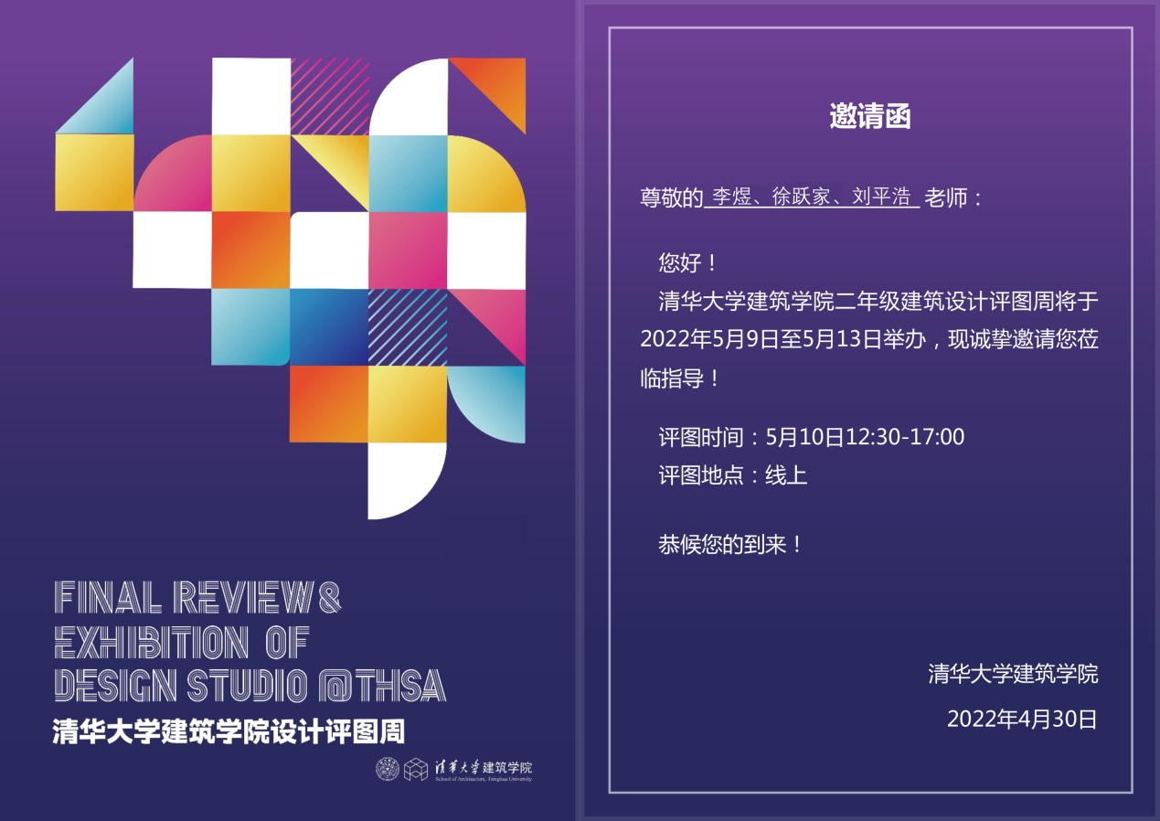 4月18日,清华大学400全讯白菜网与我校400全讯白菜网签署协议,将共建建筑学学科。共建活动于近日正式启动,我校青年教师李煜、徐跃家、刘平浩受邀参与清华大学400全讯白菜网二年级建筑设计评图工作。评图活动于2022年5月10举办,并延续至5月13日。