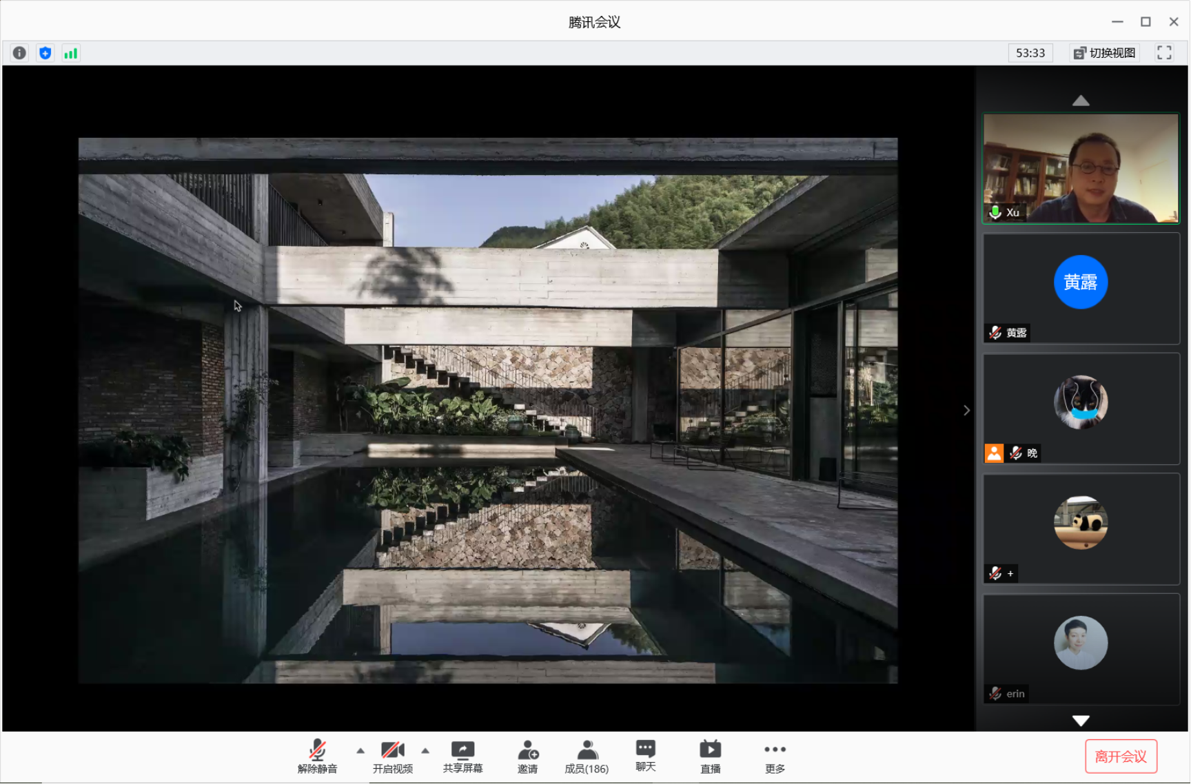 张旭向线上听众分享了旭可建筑工作室的两项实践作品,讲述其在建筑设计过程中对结构与场地的回应、建筑的时代印记、城市建筑与日常生活的关系等方面的思考。随后,刘可南向线上听众讲解了工作室的另外四项设计作品,阐述相同的设计策略在不同项目中面对的不同问题,以及对室内空间室外化的探索。自由提问阶段,同学们踊跃发言,提出关于对建构的学习、全过程设计经验的提升方式、大数据对设计的影响等问题,张老师与刘老师逐一详细解答。
