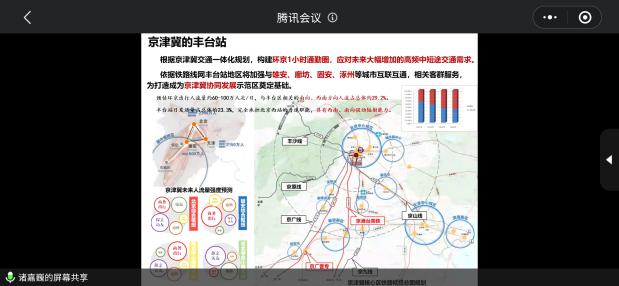 本次联合毕业设计的设计任务是“北京丰台火车站周边城市设计”。会议分为两部分,包括上位规划讲解和与会各校师生答疑交流。首先,来自北京城市规划设计研究院的诸嘉巍工程师介绍了本次课题的规划背景。为落实北京市总体规划中的“八站”格局,缓解大规模客流集聚对首都建设的影响,丰台新站将与北京西站共同承担西南向客流,成为地区重要的对外交通枢纽。工程师从“全国层面-京津冀层面-北京市层面-丰台区层面”,依次分析了丰台站及周边地区的发展情况,明确了地区的定位为“京雄走廊的轴心服务门户、城南振兴、丰台崛起的经济引擎、城市存量更新的典范地区”。随后,针对设计地块展示了现状用地构成图,提出针对地块的几个设计切入点,包括如何协调现状居住混合多功能用地与未来丰台站发展的关系、如何利用丰草河形成景观滨水廊道等。