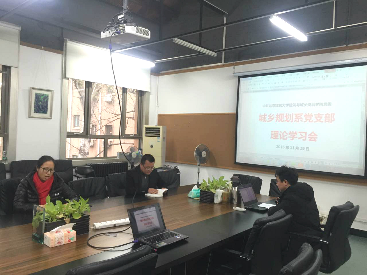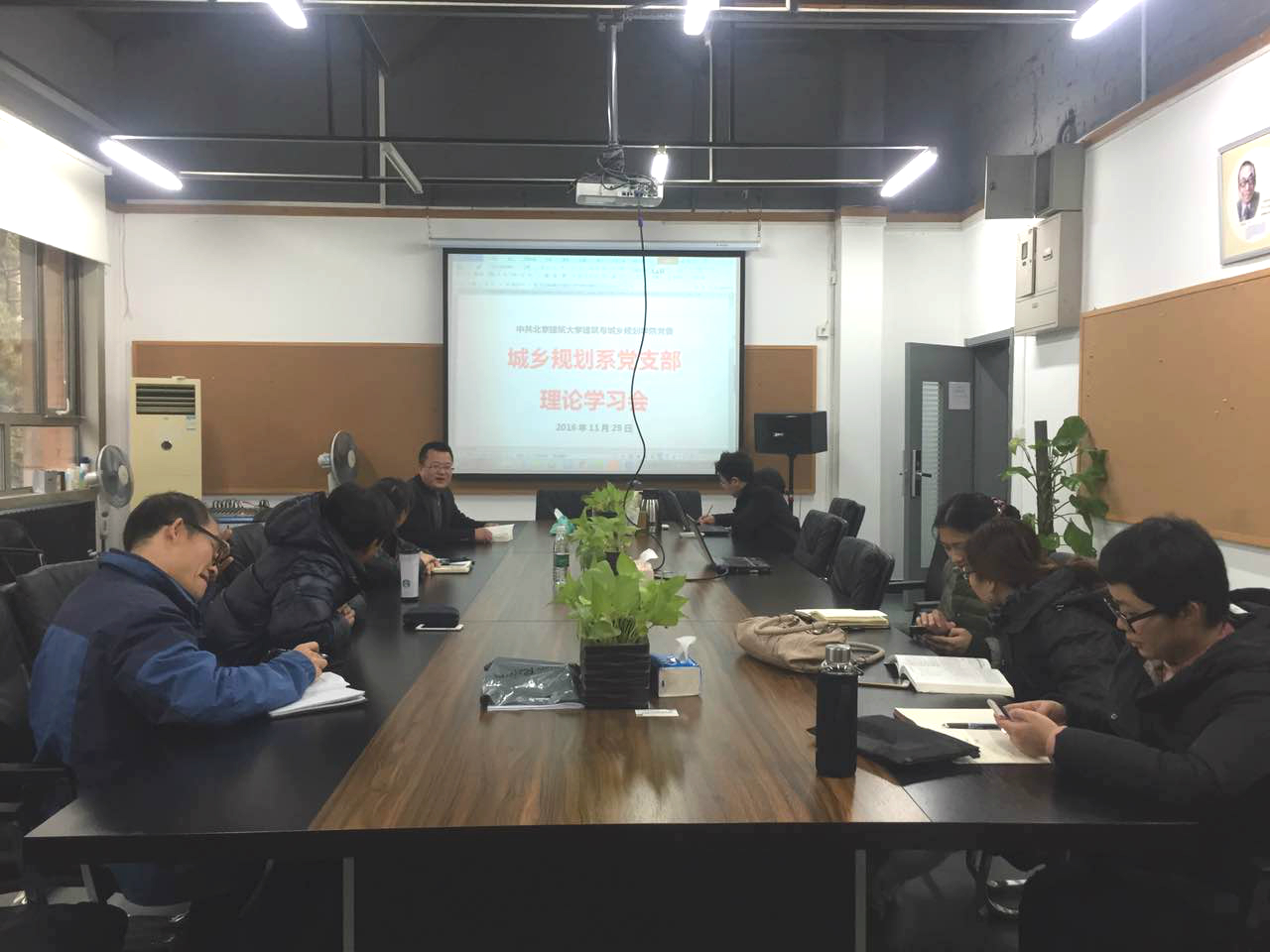 2016年11月29日下午,400全讯白菜网城乡规划系党支部在教4会议室召开理论学习讨论会。城市规划系及风景园林系的党员参加了会议。