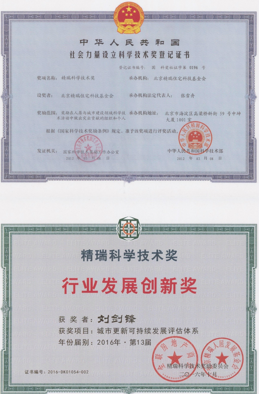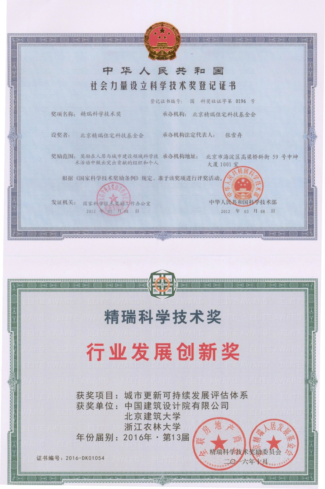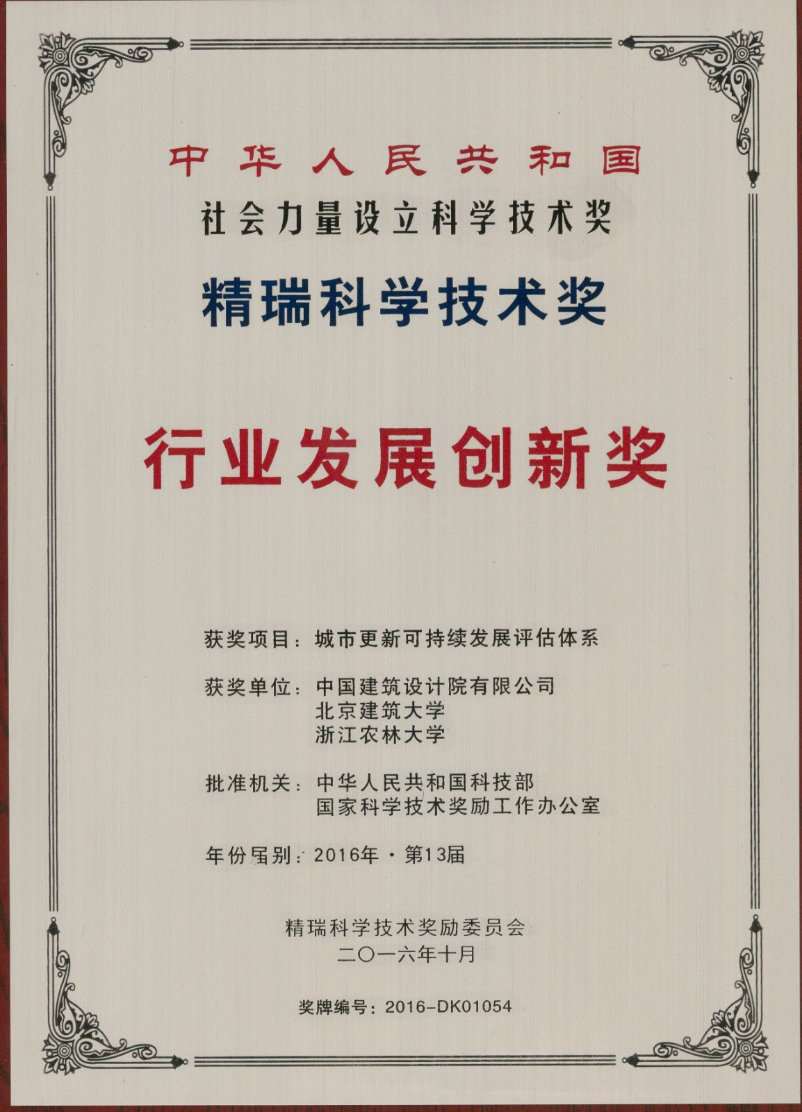 2016年10月19日,第13届精瑞科学技术奖颁奖典礼在北京富力万丽酒店隆重举行,我院刘剑锋副教授与中国建筑设计院有限公司、浙江农林大学共同参评的科技成果“城市更新可持续发展评估体系”荣获“行业发展创新奖”。