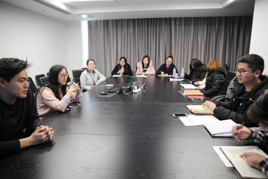 根据安排,调研活动在华通国际二楼多媒体会议室进行。华通国际人力资源部经理常桂花、招聘培训主管魏永红及北建大校友代表参加了交流活动。交流活动按照预设环节进行,华通国际常经理首先向师生详细介绍了公司的发展历程、组织架构、业务板块、代表作品、人才需求、发展通道,并结合自身在华通近十年的成长经历向师生们讲述了职业发展路径,还就学院关心的人才需求、人才培养等问题进行了耐心、细致的讲解;互动环节中,学生代表就关心的学历要求、入职考试、男女比例、求职技巧、考研与就业等问题与北建大毕业的师兄、师姐采用问答形式进行深入交流,交流持续了约四十分钟。