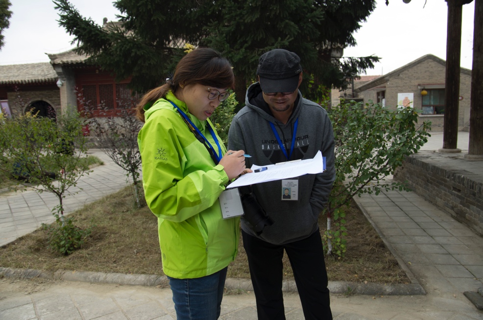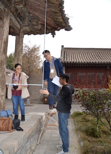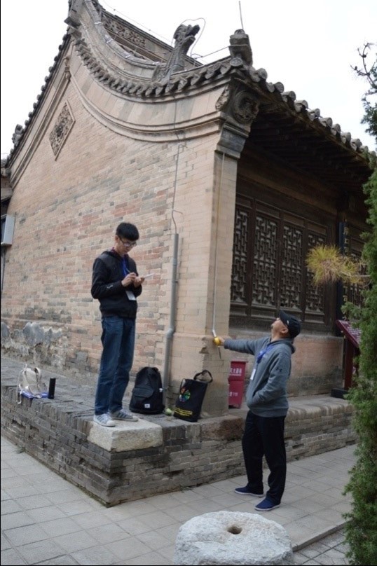 跟随老师参观玉皇阁、释迦寺及关帝庙三座古建筑群,在现场参观和测绘基础知识培训之后,学员分组并于下午开始测绘工作。