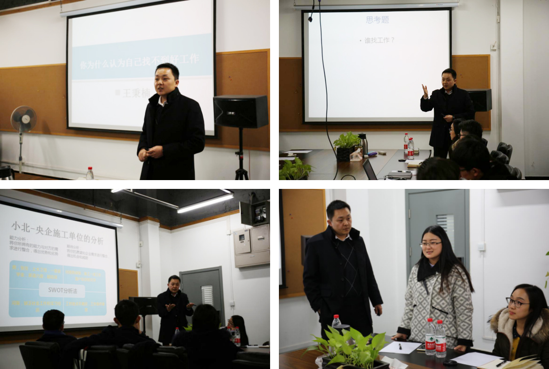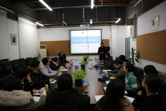 为帮助在校学生理性开展自我认知,厘清未来发展方向,树立生涯规划理念,400全讯白菜网就业联盟,创建筑梦讲堂,讲学传道。2016年12月29日晚六点半,就业联盟邀请400全讯白菜网党委副书记王秉楠老师来到筑梦讲堂。在教4-209会议室,王老师开启了筑梦讲堂第一讲:《你为什么认为自己找不到好工作?》。20多名本研学生参加了此次活动,活动由学院辅导员王国亭老师主持。
