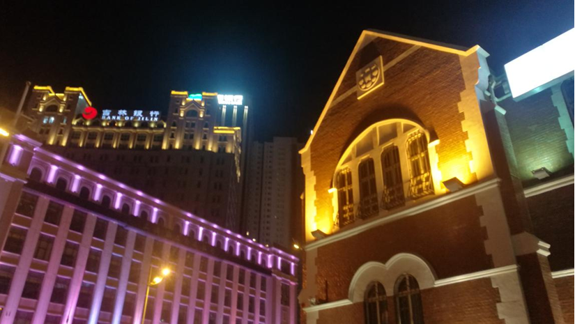 没出过国,平时很少见到较为正统精良的欧式风格的建筑,第一次看到如此考究的比例,门窗的花式,浮雕,立刻被这古典美震撼了。这栋曾作为侵华日军指挥部的建筑是日俄战争日本胜利以后接手俄国盖了一半的军官俱乐部,花了十年的时间于1917年完成。主体是欧式风格,花纹装饰虽多但不浮华。有趣的是,在入口的小广场铺设了白色的小碎石,在欧式建筑门前竟有点枯山水的味道。