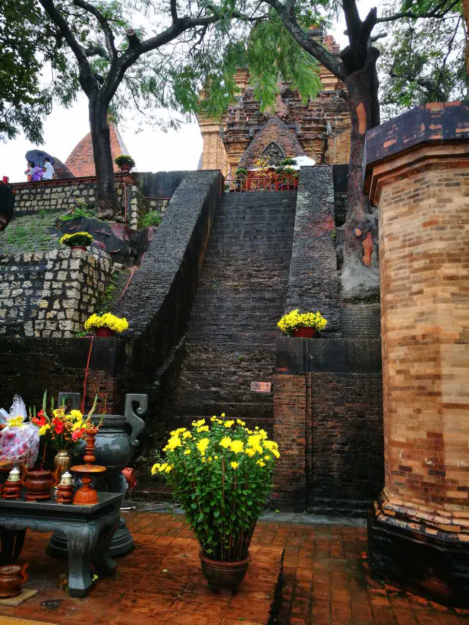 游览过后,一定要坐下来歇歇,欣赏山下港湾的美景;其实站在顶部平台可以眺望芽庄的海港,海风拂面舒服而温润,海港中渔船密布,充满风情。游人大多都会坐在平台的围栏,迎着海风欣赏美景,在一丝清凉中与友人安静的聊天。不断更叠的历史,让这座曾经占婆人的神祗不断的在各种文化浸润下发生着变化,今天的遗址,即能看到历史的痕迹,也能品味到信仰的永恒。这便是她带给我们的震撼吧!
