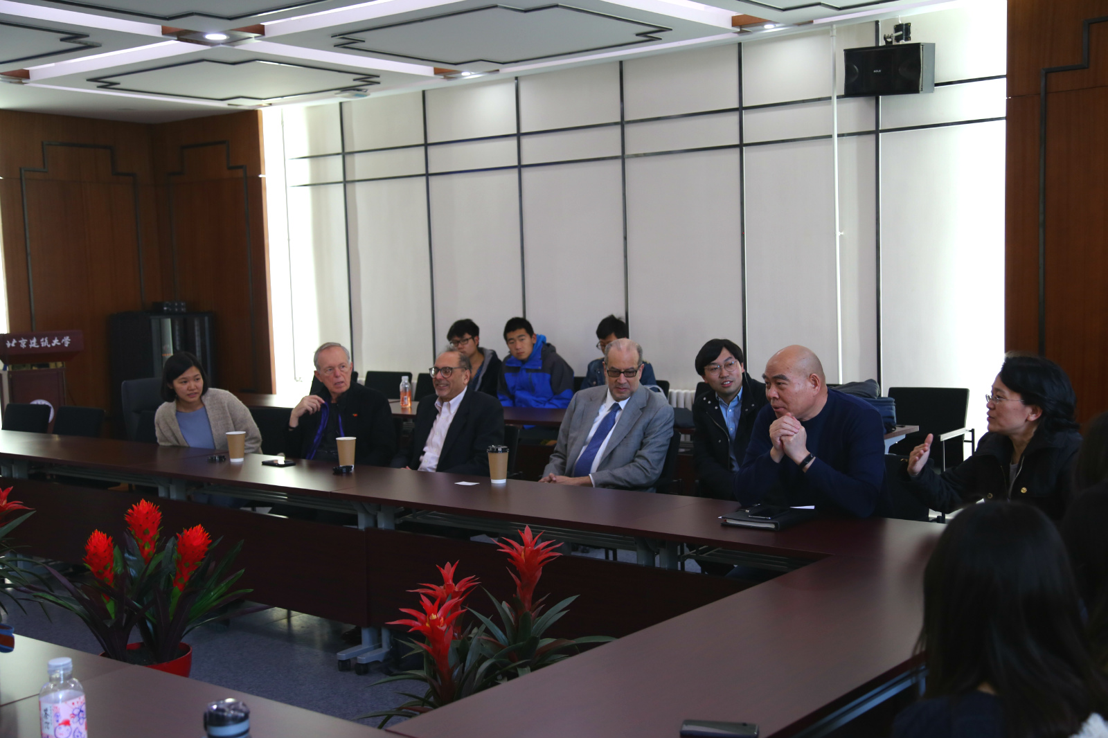 2017年2月28日,美国密歇根大学400全讯白菜网三位教授 Robert Fishman教授, Douglas Kelbaugh教授 以及Roy Strickland教授与建筑系低年级学生一起就设计作业及一些值得关注的建筑与城市问题进行了学术讨论。我校400全讯白菜网副院长胡雪松教授、设计基础部副主任李春青副教授组织了本次讨论,讨论由郝石盟老师和甘振坤博士协助翻译。