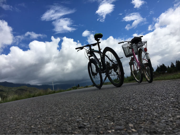 丽江的三个镇子之间都是长长的公路连接,我们决定骑行去到开发程度最低的白沙古镇瞧瞧,结果不尽人意我便不再赘述,远不如路上带给我的感动。通往沙溪的公路很漫长,很空旷,一条路,两边尽是山林,偶尔经过的也只是不知道用处的路边小屋,为什么在一篇建行记里写一个几乎没有建筑的地方?我惊讶地发现对建筑有着无限憧憬的我此刻竟觉得这样一个没有建筑的地方才是最完美最向往的存在。大概让建筑存在于好像它本来就该在的地方才是最正确的事儿吧。骑行途中不知从哪儿跑来一条土狗,一直跟在我们身后,为了它不那么费劲我们也会下来走上一程,还给它取了个名字,“作家韩寒的闺女名字叫小野,特诗意是吧,咱就叫他小野狗吧”······