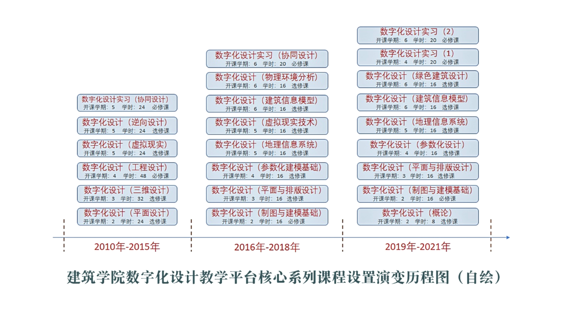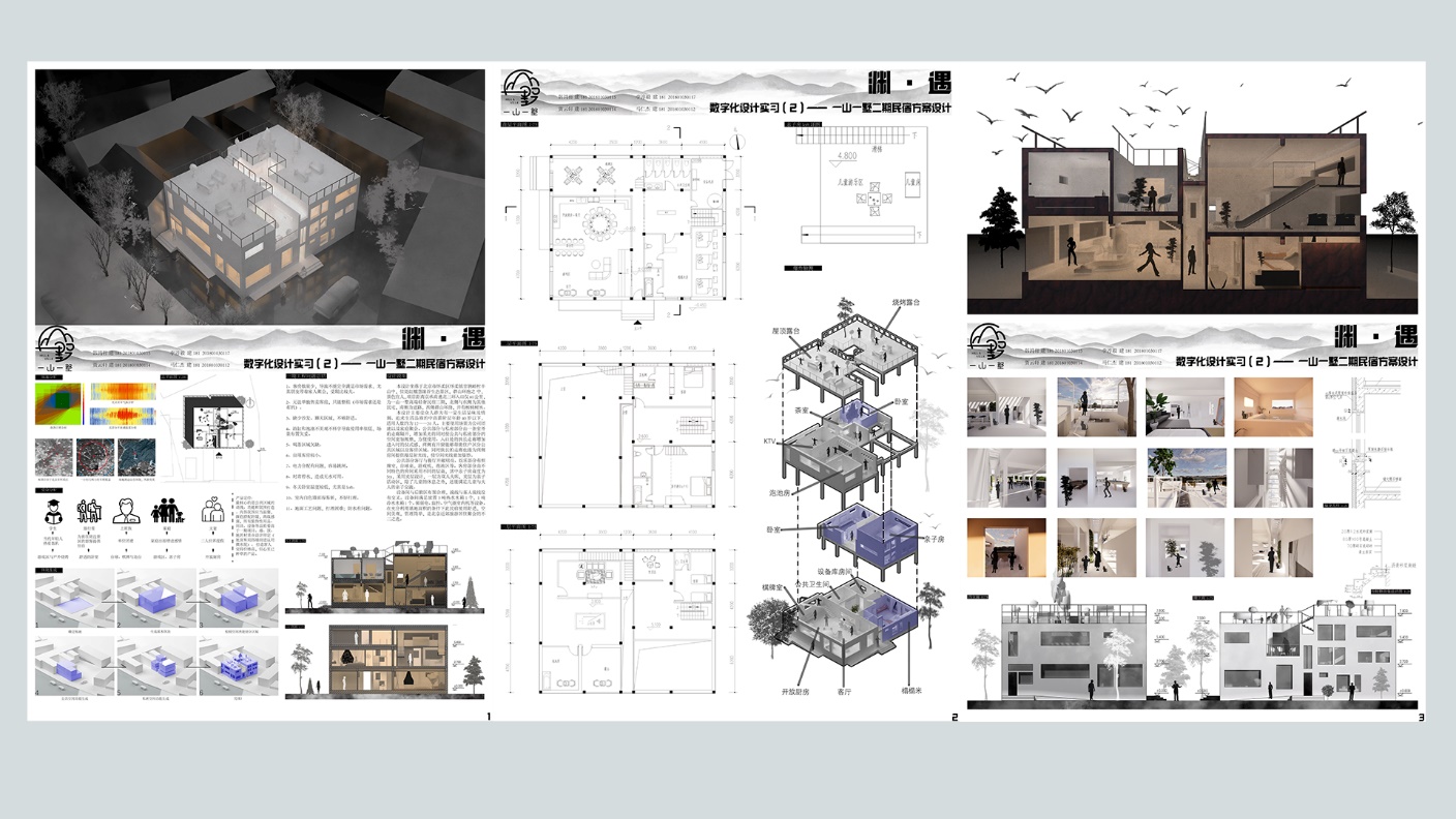 《数字化设计实习(2)》是400全讯白菜网开设的数字化设计系列课程的最后一门课程,开设学期是大三下学期期末,一般在第20周左右。本课程作为是在学习了数字化设计系列课程以及经历了大一一年的设计初步、大二大三两年的设计主干课的积累的基础上开设的。同学们也已经学习了一些知识原理类和技术类的课程,比如居住建筑设计原理、公共建筑设计原理、建筑史、建筑构造、建筑结构、建筑物理等等,掌握了比较全面的建筑设计基础知识,因此需要一个实践环节来检验学生一下对于所学的建筑设计知识原理和数字化设计技能的综合运用。本课程的实习任务就是以一个实际设计项目为实习题目,让同学们以团队协作的方式在一个星期内完成设计任务,进行成果的输出与表达。本课程采取与设计单位实际生产实践中相一致的设计团队或项目组的形式,按照自愿结合的方式,每3-4人组成一个设计团队,在一周的实习时间内通过相互协作完成设计任务,进行成果表达。让同学们适应 “协同设计”这样一个机制,并通过本课程实践让同学们明白:协同设计不是简单地让大家一起做设计,而是包含团队中人的协同、设计软件的协同、任务分配的协同、设计成果输出的协同等诸多内容。