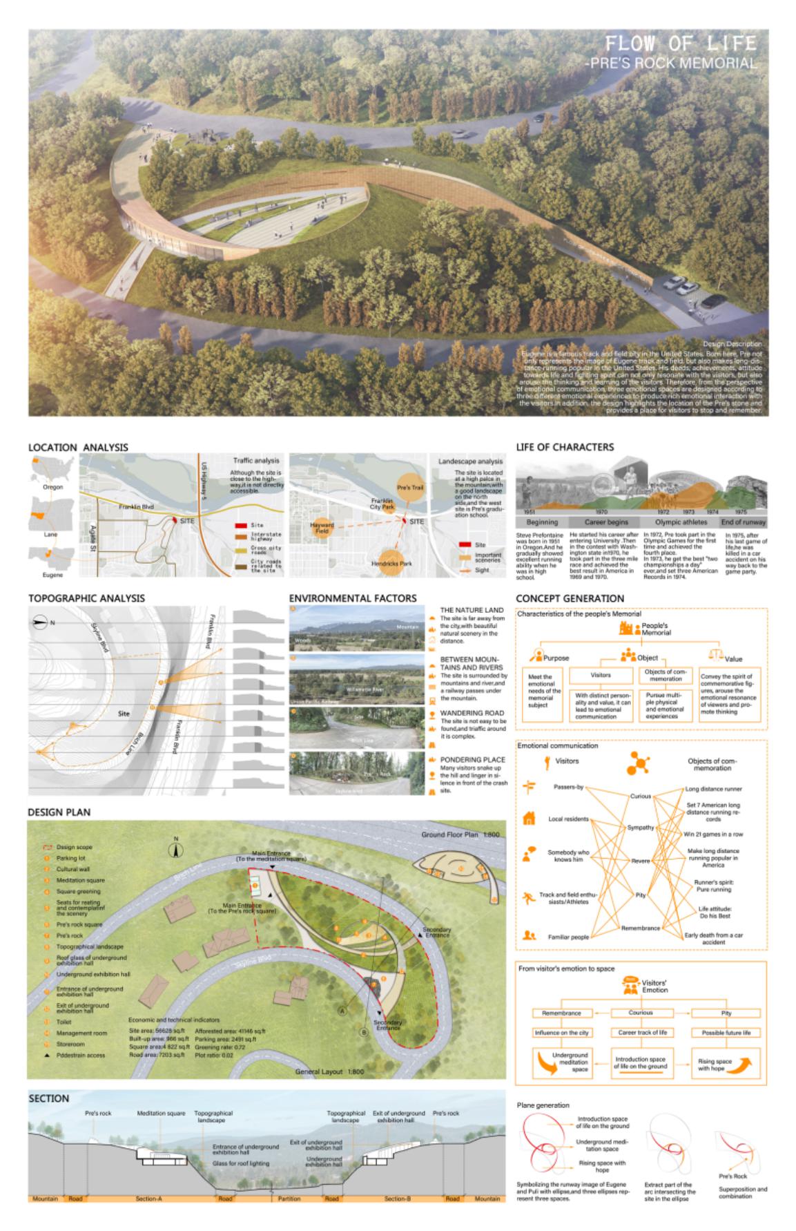 2020年6月30日,由美国Portland Track和SERA Architects联合主办的“普利之石”纪念馆国际设计竞赛(PRE’S ROCK)结果揭晓,我校2019届建筑遗产保护专业的研究生杨梦在张曼、李春青和李雪华三位老师的指导下,设计作品“生命之流—普利之石纪念馆(Flow of Life - Pre’s Rock Memorial)”获得竞赛入围奖。该奖项也是国内唯一的获奖作品。