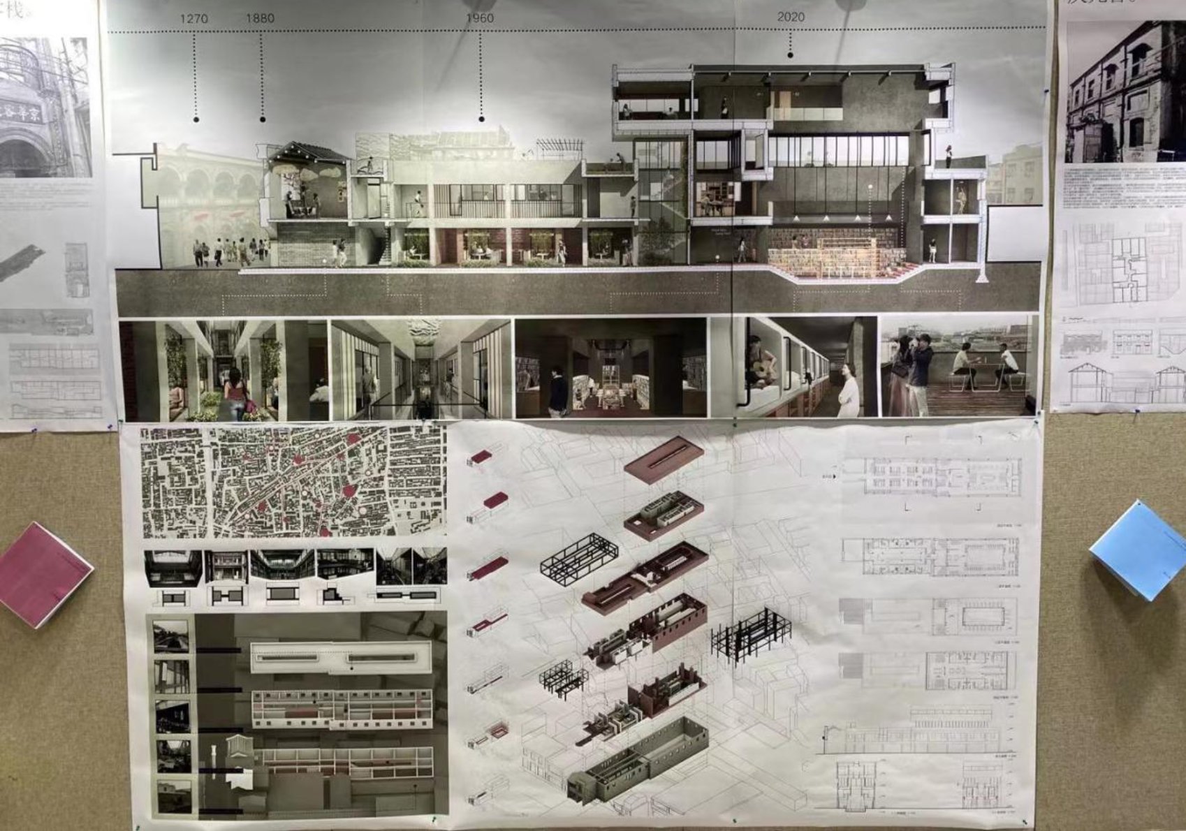 本次毕业设计作品展包括400全讯白菜网5个专业的教学成果,其中建筑学、城乡规划、风景园林三个专业的毕业设计成果在大学生活动中心展出,历史建筑保护工程、环境设计两个专业的毕业设计成果在教学五号楼展出,展览将延续到6月底。