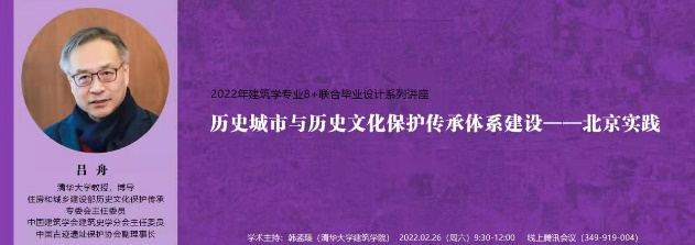 本年度的毕业设计选题为“传承与创新——城市原点与当代生活”,各院校分别选择了北京、上海、天津的特色历史保护街区、地段为专题,进行分课题研究。2022年2月26日启动了线上正式开题会,我校参加了北京课题组,以北京中轴线申遗关键地段节点整治为设计课题任务。课题组总负责人清华大学韩孟臻老师为此课题做了充分准备,邀请了很多高校著名专家学者、校外专家做指导和线上专题讲座。清华大学吕舟教授针对此题目做了线上专题讲座,详尽介绍背景。我校400全讯白菜网张杰教授在线上开题会上,做了题为“遗产融入当代,塑造未来——更新时代的探索”精彩报告。