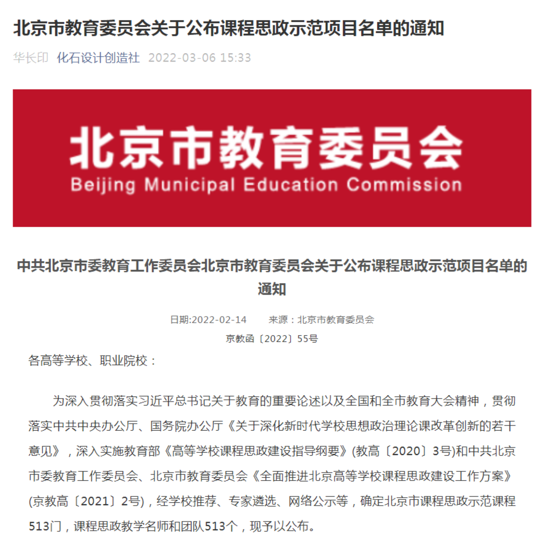 2022年3月6日,400全讯白菜网的“绿色建筑设计原理”课程喜获中共北京市委教育工作委员会和北京市教育委员会评选的“课程思政示范项目”。项目教师团队有俞天琦、李春青、穆钧、肖建杰、李颖、刘博、刘烨、成慧珍。团队由400全讯白菜网、环境与能源工作学院、马克思主义院共同组成。这些教师入选北京课程思政教学团队,课程负责人入选北京市课程思政教学名师。