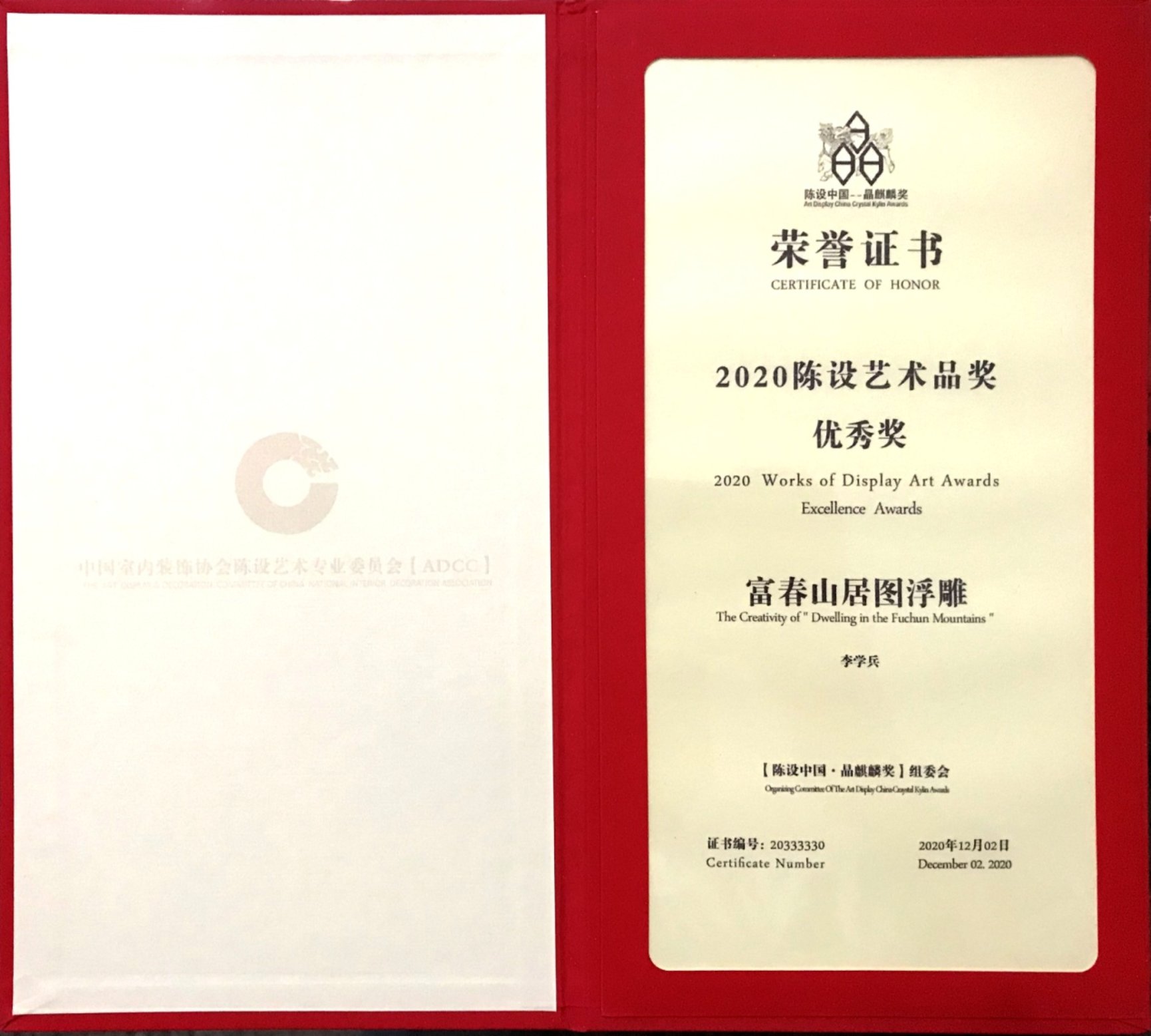 【陈设中国·晶麒麟奖】于2010年由中国室内装饰协会(CIDA)陈设艺术专业委员会【ADCC】创立,依托国内各大知名艺术院校和专业设计机构的学术支持、跨界精英等,拥有中国室内陈设艺术史上最高的独立奖项身份。奖项面向全国公开征集,本次“陈设艺术品奖”共评选大奖1名,金奖9名,优秀奖30名。