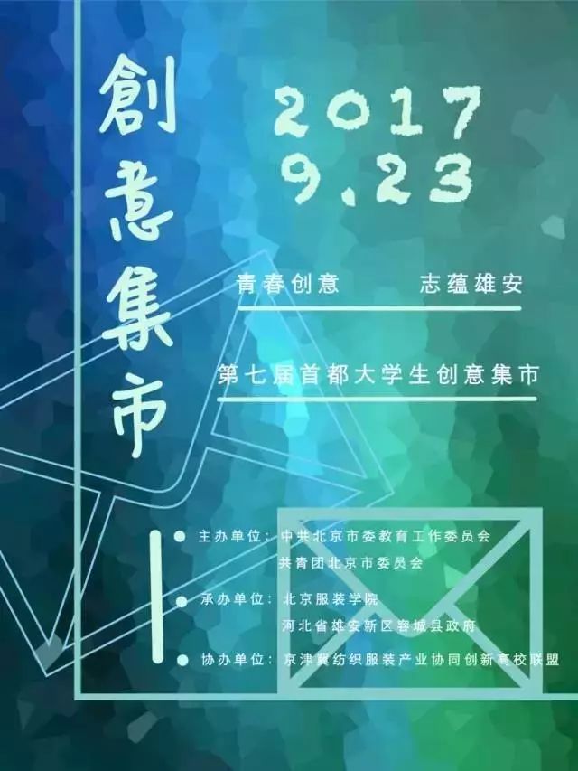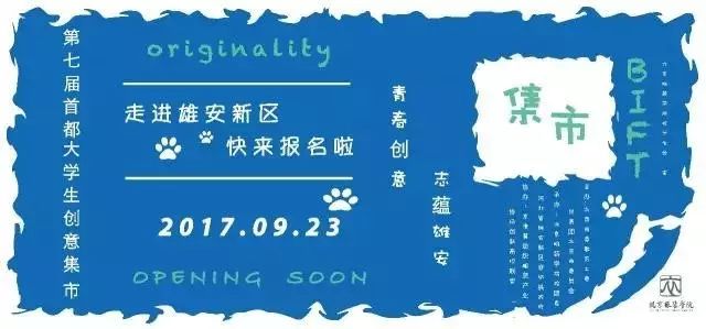 由北京市委教育工委牵头主办,北京服装学院和河北省雄安新区容城县政府联合承办的第七届首都大学生创意集市活动正式启动啦!欢迎报名参加,展示你的创意和成果,将有机会获得奖金和展卖专柜哦!
